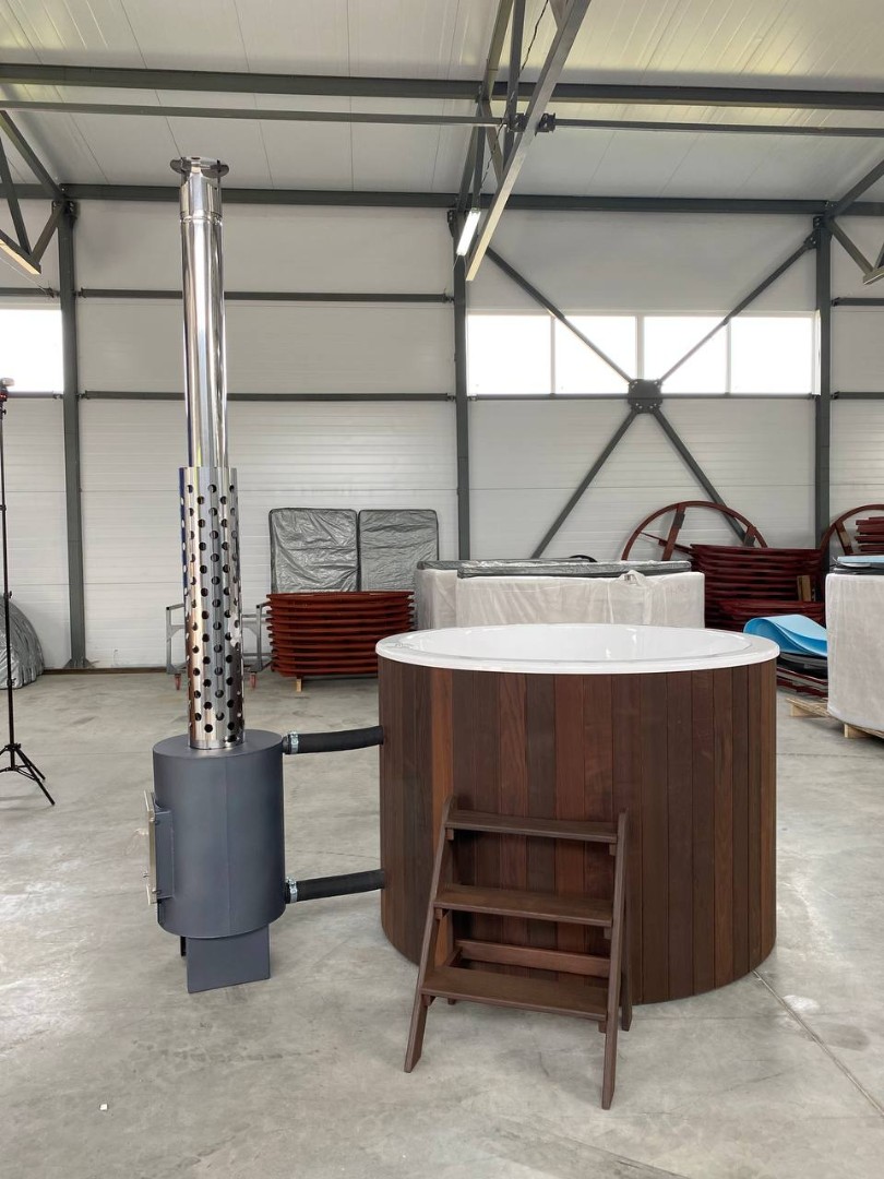S ovom kadom se u kompletu dobija i spoljašnja peć POLARSPA od 40 kW. Voda će se do prijatne temperature zagrejati za 1,5 do 2 sata.